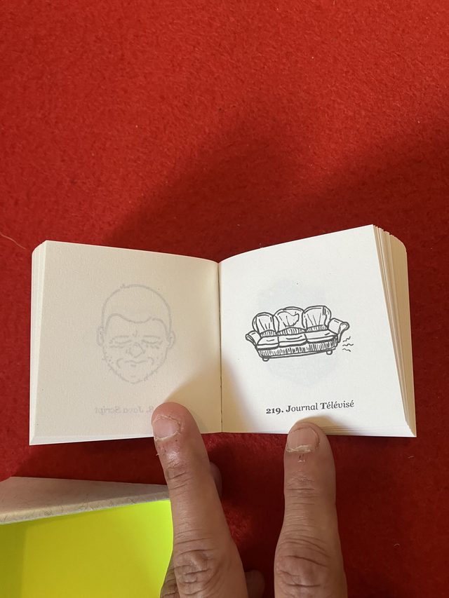 Le Monde entier, textes de François Belsoeur, dessins & book design par Alexandra Lafitte, Courte échelle 2025 / abécédaire d'acronymes (AA = alcooliques anonymes, AB = agriculture biologique, AC = air conditionné, etc.) et réponse graphique. Tirage progressif, façonnage & reliure à l'atelier.